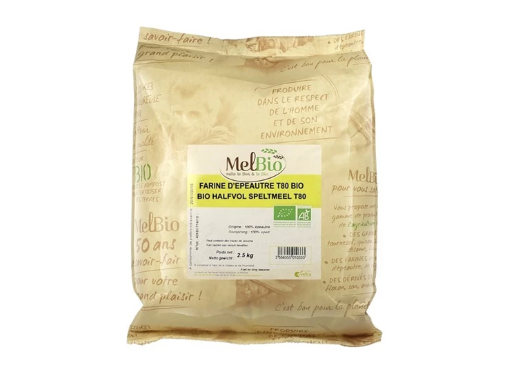 Halfvolkoren meel van biologische spelt, herkomst Frankrijk. Ideaal voor boerenbrood, pannenkoeken en zandkoekjes. Groot formaat: 2.5KG.