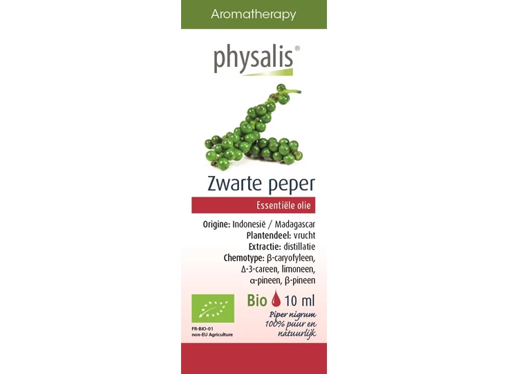 De olie van zwarte peper is een verwarmende olie. Verwerkt in een massageolie maakt het de spieren soepel en verwarmt het koude handen of voeten. Zwarte peper stimuleert de spijsvertering.