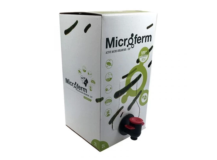 Microferm is de actieve oplossing van Effectieve Micro-organismen (EM®). Het bevordert de fermentatie van organisch materiaal en kolonisatie door EM®.