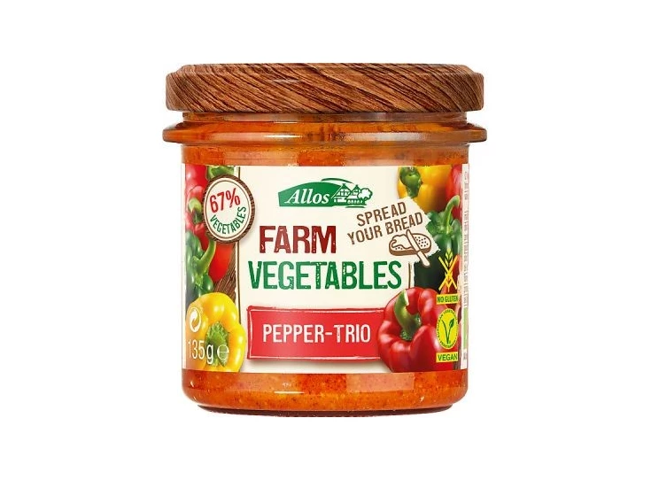 Precies wat de naam belooft: een spread met maar liefst 67% biologische groente, rode gele én groene paprika's.