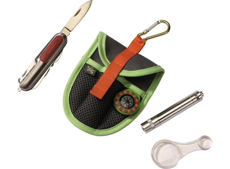 In dit tasje zit alles wat kleine ontdekkers voor hun avonturen in de natuur nodig hebben.