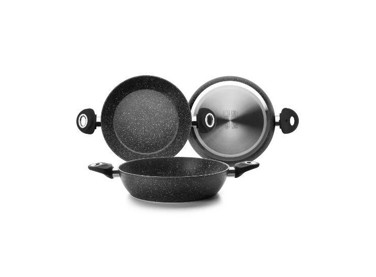 Antikleefpan uit gesmeed aluminium met Stone-style non-stick coating.