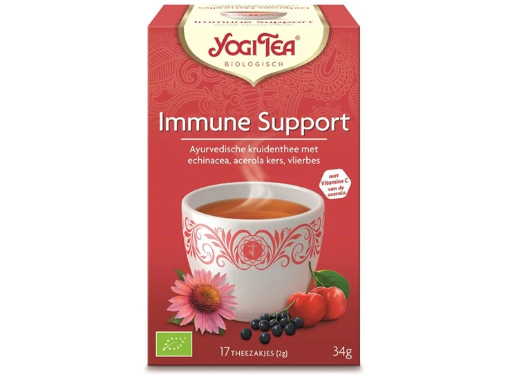 Echinacea* (25%), rozebottel*, gedroogd acerolasap* (14%), basilicum*, kaneel*, gember*, kardamom*, vlierbessen* (4%), zwarte peper*, moringa*, hibiscus*, cacaoschil*, zoethout*, venkel*.
