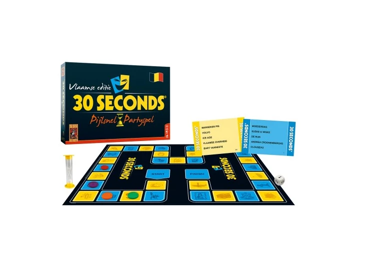 Spectaculair partyspel voor teams. Omschrijf binnen 30 seconden 5 verschillende begrippen. Dan blijkt hoe kort een halve minuut is. Met op Vlaanderen toegespitste begrippen!