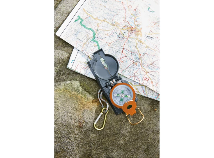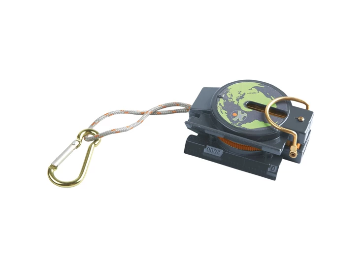 inclusief nylonband en aluminium karabijnhaak voor bevestiging aan een rugzak of riemlus