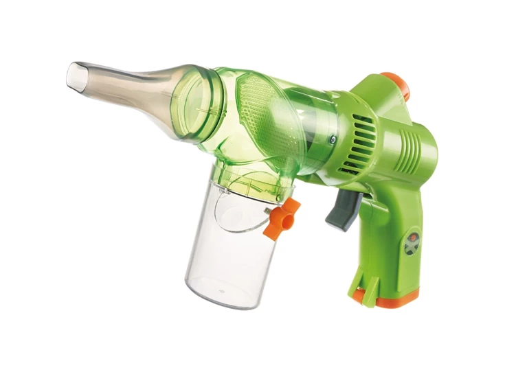 “Zzzzzzt” en “floep” – vliegen, spinnen, mieren enz. zijn met de Terra Kids Insectenzuiger zo opgezogen. Dat gaat heel eenvoudig en natuurlijk ook bijzonder diervriendelijk. Om te verhinderen dat de beestjes direct weer ontsnappen, wordt de opvangbeker met een draaiklep afgesloten. Nu kunnen de kinderen hun kleine onderzoeksobjecten in alle rust observeren en vervolgens weer vrijlaten. Met batterijvoeding en 3 verschillende zuigstanden.