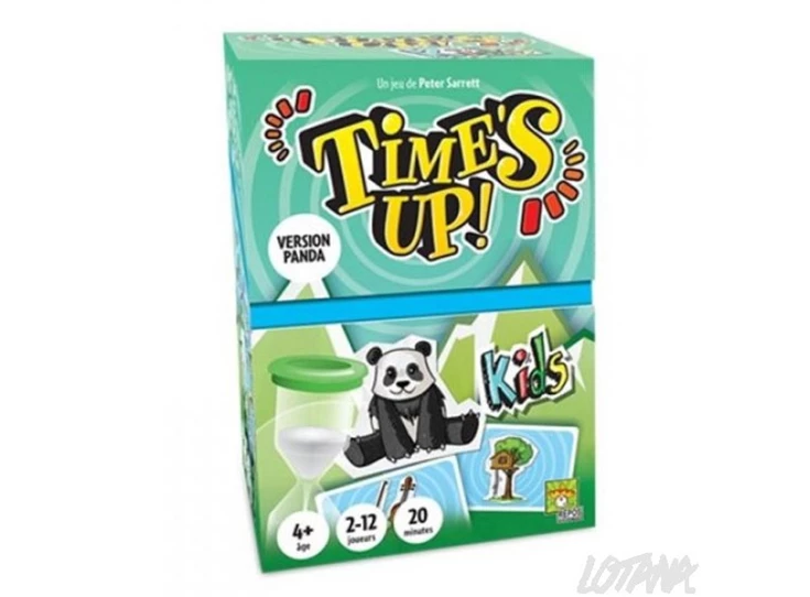 Time's up Kids 2 Panda versie is een Time's up spel speciaal voor kinderen die nog niet kunnen lezen. Je speelt dit spel het best in teams. Iemand moet zo snel mogelijk aan de andere spelers van zijn team duidelijk maken welke afbeelding op zijn kaartje staat. Hij moet dit doen door het voorwerp/dier te beschrijven of door het uit te beelden. De ploeg die het best kan samenwerken, wint.
