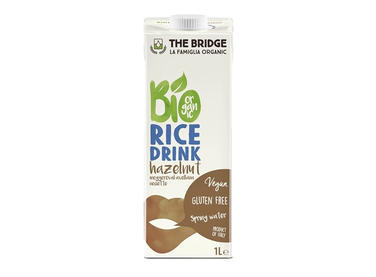 Ingr.: bronwater, Italiaanse rijst (17%), hazelnotencrème (3%), appelsap, koudgeperste zonnebloemolie en saffloerolie, zeezout.