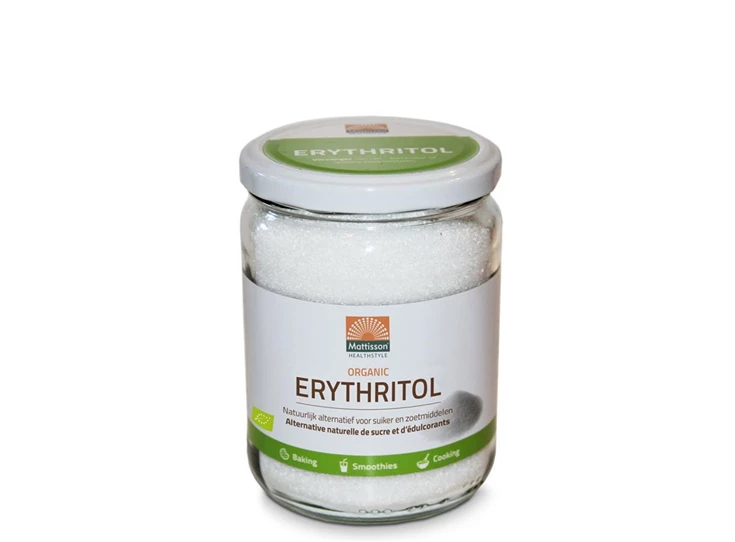 Erythritol is een natuurlijke zoetstof die van nature voorkomt in sommige paddenstoelen, vruchten (o.a. watermeloen, druif en peer) en gefermenteerde voeding zoals wijn, kaas en soja-saus. Erythritol is de enige natuurlijke polyol en is geproduceerd middels natuurlijke fermentatie en heeft ongeveer 70% van de zoetkracht van gewone suiker. Erythritol is een ideale vervanger van riet-, bietsuiker of andere zoetmiddelen. Geeft een heerlijke zoete smaak aan smoothies, yoghurt, tussendoortjes, dranken, ijs en andere (na)gerechten.