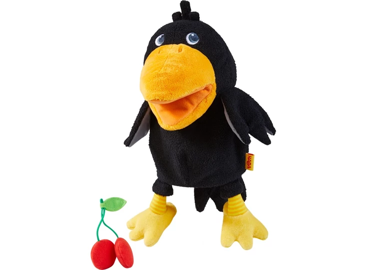 - de brutale raaf Theo uit de HABA-spelklassieker ‘Boomgaard’ als handpop