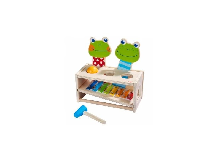Klop, klop, kling, klang … Wie kan de bal behendig door de gaten kloppen of mooie klanken maken met de vijftonige metallofoon? Wat de kinderen bij het spelen ook kiezen, beide opties zijn gewoon beestachtig leuk. En tegelijkertijd wordt al spelend de fijne motoriek en de muzikale ontwikkeling van de kleintjes bevorderd.