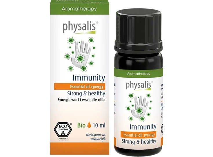 Boost je natuurlijke weerstand met Physalis Immunity dankzij de synergie van 11 essentiële oliën. Bevat o.a. ravintsara, niaouli, grove den, eucalyptus radiata, tea tree en gele en rode tijm. Bij uitstek geschikt om je lichaam te wapenen tegen winterkwaaltjes vooral in periodes van vermoeidheid, stress en slechte weersomstandigheden.