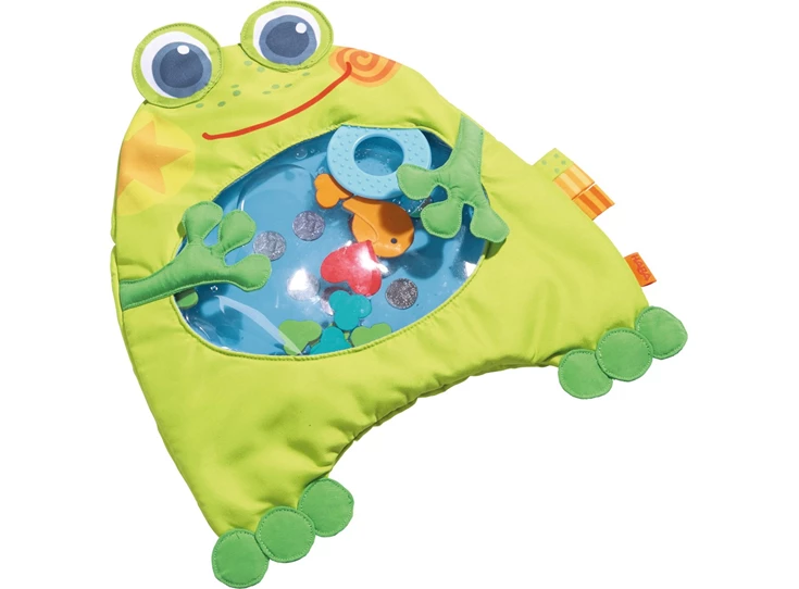 Deze waterspeelmat is voor alle baby’s een hele belevenis. Ze kunnen ontdekken wat er allemaal rondzwemt. De spiegelelementen, bladeren, het hart en de vis kunnen ze gemakkelijk met de hand heen en weer bewegen. Dat is leuk en stimuleert de motoriek als ze op hun buik liggen. De met water gevulde mat is voorzien van een zachte hoes, zodat baby’s prettig liggen.