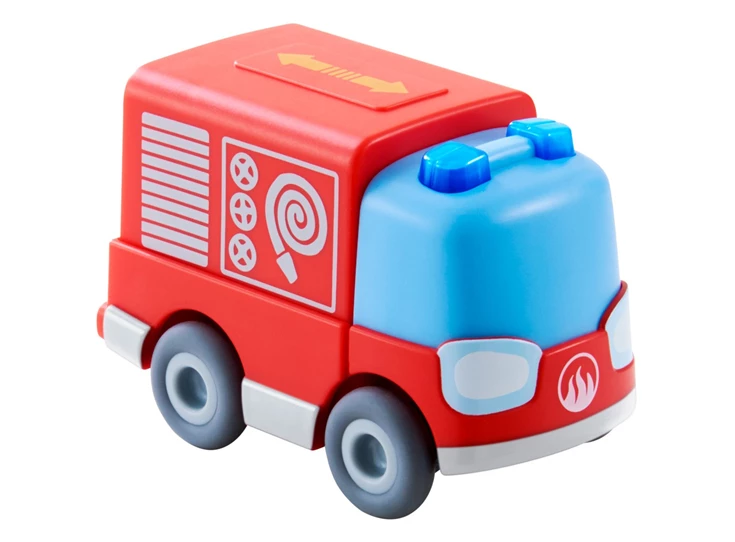 De krachtige aandrijving op batterijen beweegt de brandweerauto heen en weer over de banen. Als de aandrijving uitgeschakeld wordt, kan de wagen ook met de hand vooruit geschoven worden.