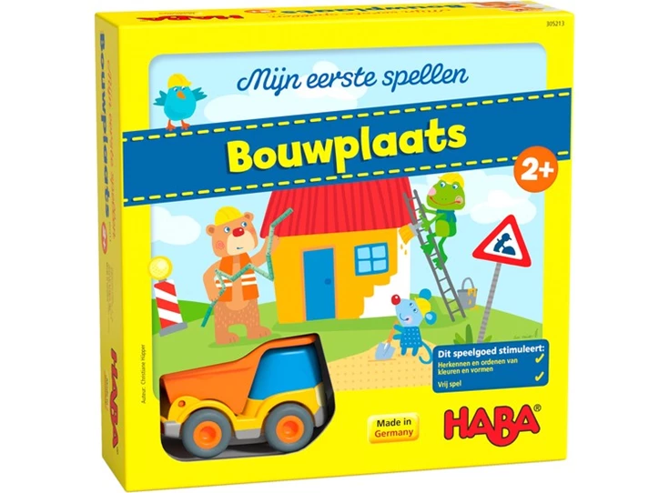 3. Jullie spelen na elkaar. Wie aan de beurt is, draait een kegelplaatje om. Past dit bij de huidige afbeeldingen op het bouwplan, dan brengt de speler het met de kiepwagen naar Bruno Beer.