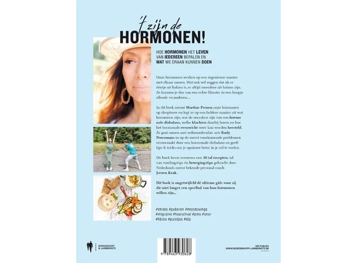 hersteld. Ze gaat samen met orthomoleculair arts Rudy Proesmans in op de meest voorkomende problemen veroorzaakt door een hormonale disbalans en geeft tips & tricks om je opnieuw beter in je vel te voelen. Dit boek bevat eveneens een 30-tal recepten, voedingstips en bewegingstips, gebracht door Nederlands meest bekende personal coach Jeroen Krak.