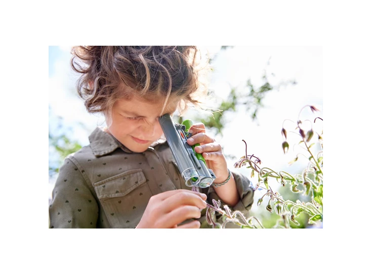 Te klein bestaat niet! Welke structuur heeft een grassprietje en hoe ziet een bladnerf er van dichtbij uit? Voor kleine onderzoekers en ontdekkers die hun omgeving eens grondig onder de loep willen nemen, is de Terra Kids Microscoop het perfecte hulpmiddel. Met de praktische vergrotingsfunctie kunnen zelfs de kleinste details uit de natuur en omgeving worden bekeken en bestudeerd.