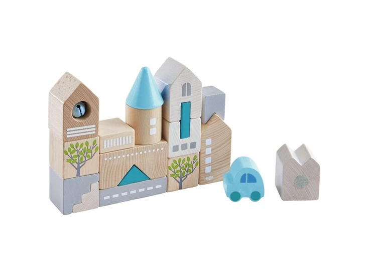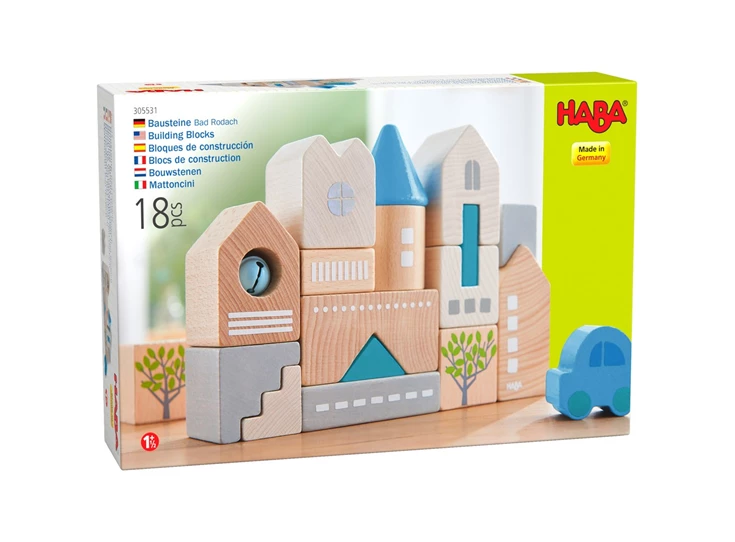Het hoofdkantoor van HABA heeft zich al altijd in Bad Rodach bevonden, in de Duitse regio Opper-Franken. Met deze bouwstenenset kan de stad prachtig worden nagebouwd. Met verschillende torentjes, daken en trapvormige stenen kunnen de bouwmeesters telkens weer nieuwe varianten creëren. Terloops wordt hierbij het driedimensionale denken bevorderd.