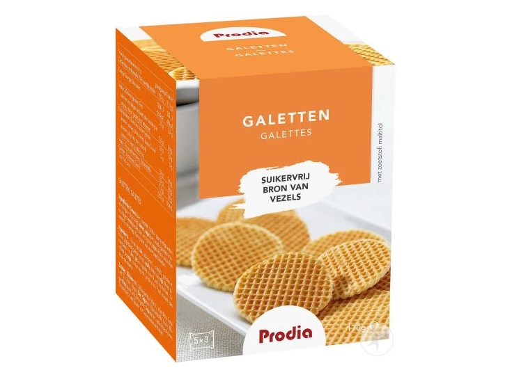 Galetten zonder toevoeging van suiker, gezoet met maltitol, in portieverpakking.