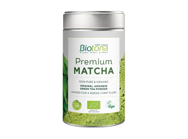 Biotona Bio Premium Matcha is een jadegroene, verfijnde groene thee met een milde en zachte “umami” smaak afkomstig uit Japan. Exclusief gemaakt van jonge theeblaadjes, traditioneel begin mei (de eerste oogst) met de hand geplukt, na een overschaduwing van 4 weken.