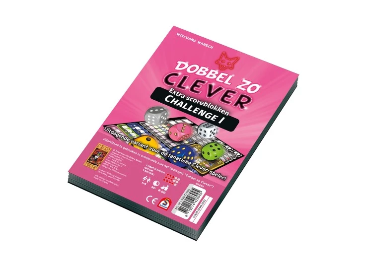 Voor de doorgewinterde dobbelaar die het scoreformulier van Dobbel zo Clever kan dromen is er het Dobbel zo Clever Challenge scoreblok. Kleine wijzigingen in de lay-out bieden tal van nieuwe mogelijkheden om die topscore te halen. Het Challenge scoreblok heeft verder precies dezelfde regels als het normale spel, maar de bonussen en voorwaarden op het blaadje zijn anders. Maak je klaar om Dobbel Zo Clever te herontdekken!