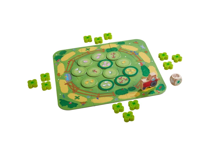 De spelers helpen boer Tim bij het tellen en voeren van de jonge dieren. Met dobbelgeluk verplaatsen ze Tims trekker naar de sappige klaverbladen. Wie het laatste klaverblad voert, wint het spel, tegelijkertijd leren de kinderen tellen.