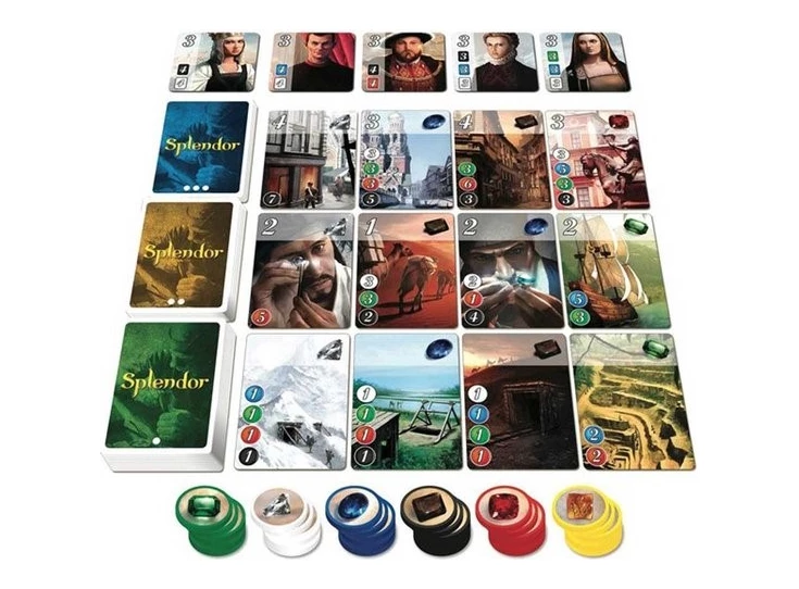 In het snelle en tactische spel Splendor kruip je in de huid van een rijke handelaar en investeer je in de juiste edelstenen (chips). Je gebruikt je rijkdom om mijnen en transportmiddelen te verwerven en kunstenaars te rekruteren om van edelstenen prachtige juwelen te maken. Dit alles doe je om de meest prestigieuze handelaar te worden. Als je erg welvarend bent, kun je zelfs bezoek krijgen van edellieden, die je kunt verleiden tot de aankoop van jouw juwelen. Dit levert je natuurlijk nog meer prestige op!