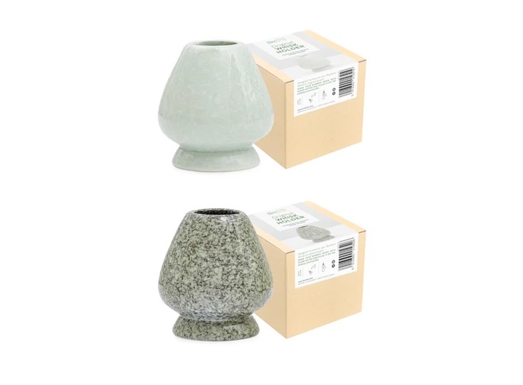 De Bamboo Whisk Holder of houder is de perfecte aanvulling voor de Bamboo Whisk of bamboe klopper. Na gebruik kan je de bamboe klopper gemakkelijk afwassen met wat water en deze op de groene en porseleine houder plaatsen. De bamboe klopper droogt mooi op en zijn originele vorm wordt zo gemakkelijk behouden.
