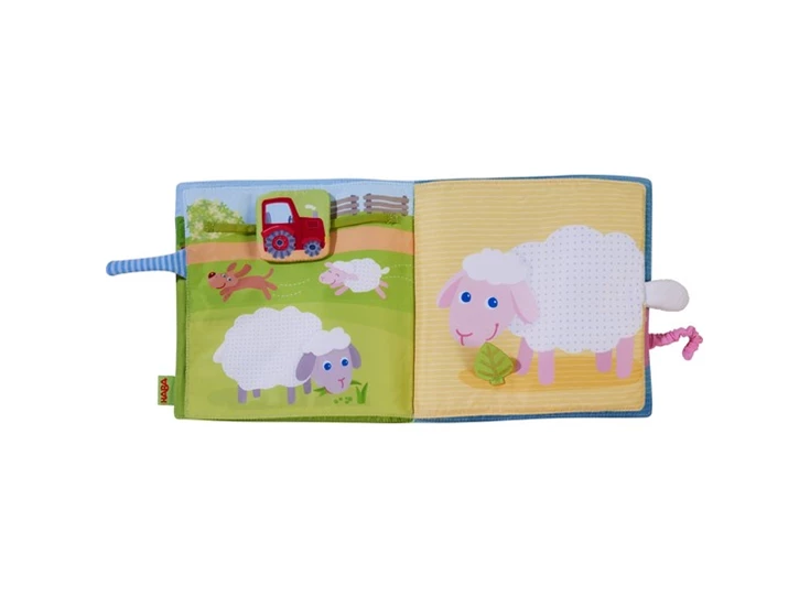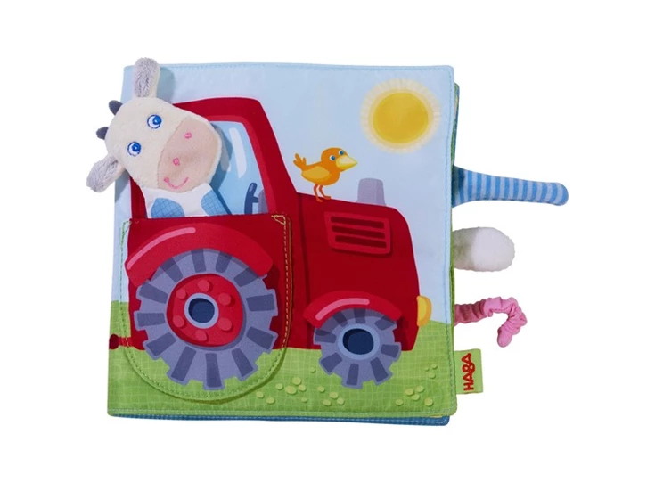Met dit zachte stoffen boek worden ook de jongsten al gestimuleerd om te kijken, voelen, spelen en (be)grijpen. De koe is als vingerpop op pad op de boerderij en beleeft allerlei leuke avonturen. Flapjes, een geluidselement en spiegelfolie nodigen uit om te kijken en te ontdekken. Op die manier zorgt het stoffen boek met zijn vrolijke kleuren altijd voor goed amusement.