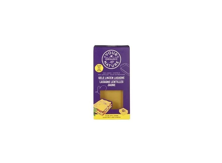 Your Organic Nature Gele Linzen Lasagne is een ideale basis voor een glutenvrije lasagne. De bladen bestaan voor 90% uit linzen en zijn eiwitrijk.