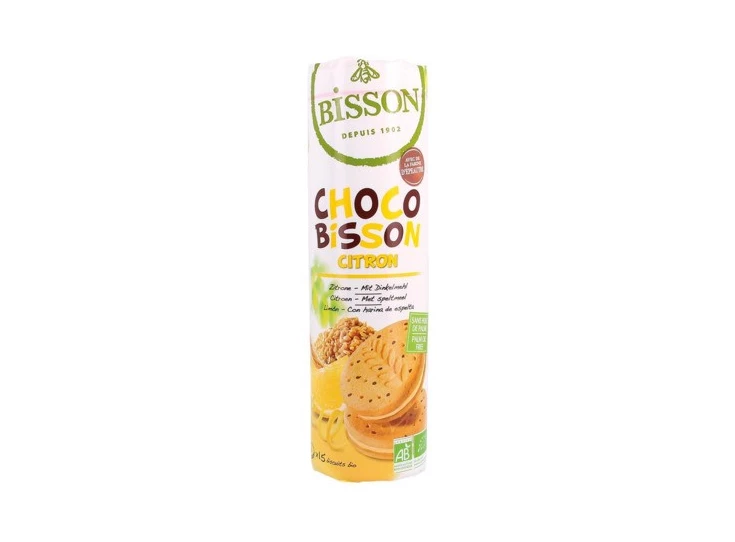 Biologische speltkoekjes met chocoladestukjes en citroenvulling