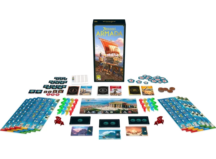 Armada is een uitbreiding voor het bordspel 7Wonders, waarmee jij de zeeën kunt gaan veroveren: ga aan boord van jouw schip, verken verre eilanden, handel met afgelegen steden en zorg dat jouw vloot klaar is voor de dreigende oorlog op het water… Let op: het 7Wonders basisspel (nieuwe editie) is vereist voor het spelen van deze vernieuwde uitbreiding.