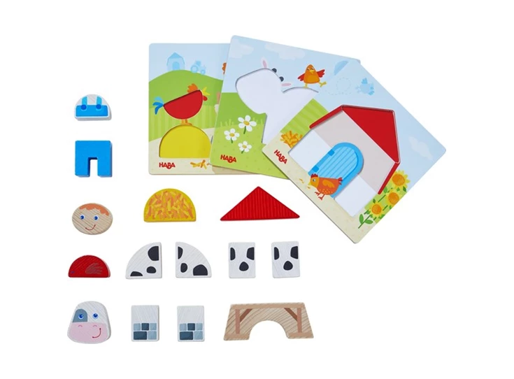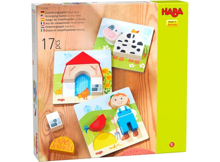 Is dat de buik van de koe? En waar zit de haan? Met het ordeningsspel Boerderij leren kinderen al spelend verschillende vormen en kleuren kennen. Het ordenen van de plaatjes in de juiste uitsparingen op de legborden is leuk en bevordert al spelend de fijne motoriek.