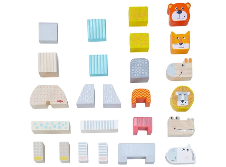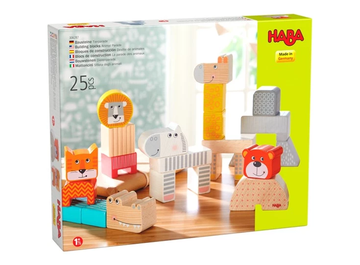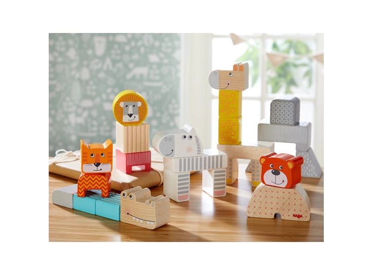 De giraf, leeuw, zebra en andere dieren staan klaar voor de grote parade en kleine bouwers kunnen hen helpen! Met de bouwstenen in verschillende kleuren en patronen kunnen de dieren telkens weer anders in elkaar worden gezet – ook in de meest gekke combinaties. Dat zorgt voor veel plezier en bevordert de creativiteit.