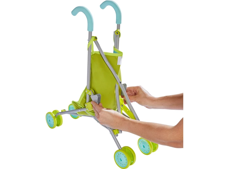 Met deze handige buggy kunnen poppenouders hun babypoppen of knuffels comfortabel rondrijden en overal mee naartoe nemen. Dankzij de gordel komt hun kleine schat altijd veilig op de bestemming aan.