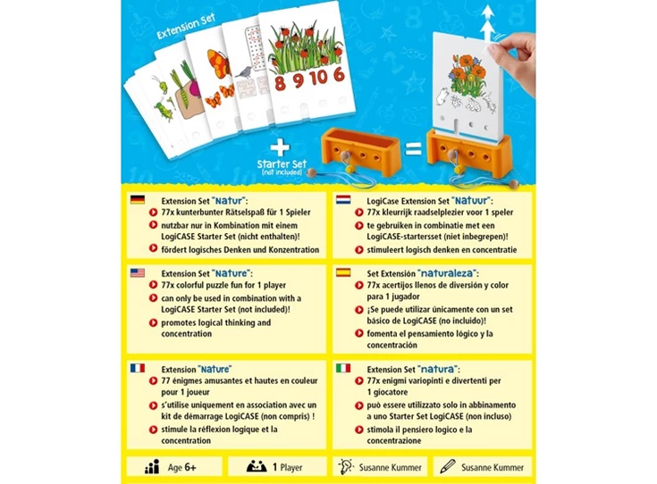 Kleurrijk, uitdagend, afwisselend - dat zijn de LogiCASE-raadselsets. Het doel is om de meest uiteenlopende opdrachten te ontgrendelen en op te lossen. De speler kan zijn/haar antwoord zelf controleren met de houten pin. Kan men de kaart eruit trekken of niet? Dit versterkt de motivatie en vaardigheid om een probleem zelfstandig op te lossen. Is een raadsel opgelost? Dan wacht de volgende uitdaging al! Met de LogiCASE-uitbreidingssets kunnen de starterssets eenvoudig en flexibel worden uitgebreid op basis van thema en moeilijkheidsgraad. Zo blijft het altijd spannend!