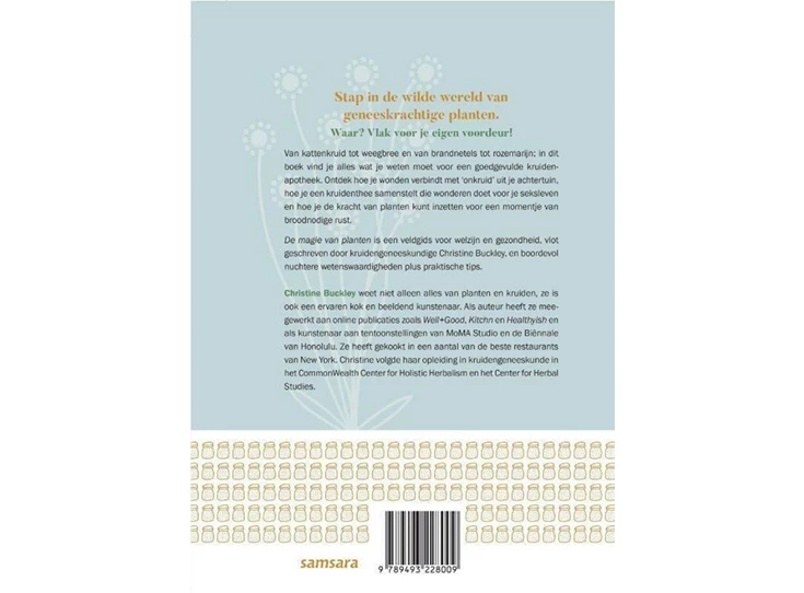 Vraag jij je weleens af: wat is dat nu precies, kruidengeneeskunde? Of: welke wilde planten kan ik veilig eten en waar vind ik die? Dan is dit het boek voor jou: een veldgids voor welzijn en gezondheid, vlot geschreven door kruidengeneeskundige Christine Buckley, en boordevol nuchtere wetenswaardigheden plus praktische tips.