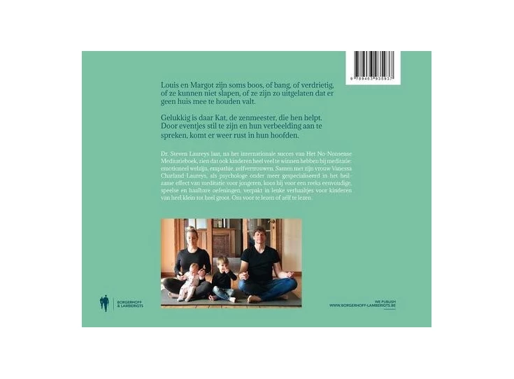 Na het internationale succes van zowel Het No-Nonsense Meditatieboek als van het daaraan gelinkte Oefenboek, wil dokter Steven Laureys nu ook de kinderen bedienen. Want ook zij kunnen veel hebben aan meditatie, zelfs al vanaf heel jong. En hij doet dat samen met zijn Canadese vrouw Vanessa Charland, als psychologe onder meer gespecialiseerd in het heilzame effect van meditatie voor jongeren. Negen innemende verhalen helpen ouders en hun dochters en zonen op weg naar verzachting in situaties wanneer dat nodig is. Is je kind boos of verdrietig, bang of zenuwachtig, voelt het zich alleen of onzeker of heeft het pijn? Al die gevoelens zijn oké, die hoef je niet te verbergen of weg te duwen. Maar je kan ze wel verzachten door meditatie. Dit boekje toont je hoe je dat kan doen. Om voor te lezen of zélf te lezen.