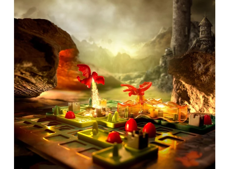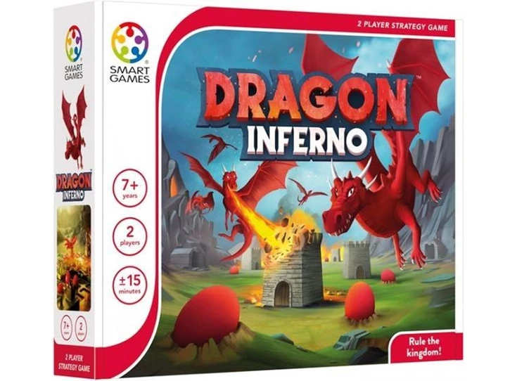 Regeer het koninkrijk… of ga in vlammen op! Bouw het grootste koninkrijk om het spel te winnen en blokkeer je tegenstander om hetzelfde te doen. Let op! Vuurspuwende draken leggen koninkrijken in de as... maar als je slim bent, kun je het drakeninferno tegen je tegenstander gebruiken. Een brandend strategisch spel voor 2 spelers vanaf 7 jaar.