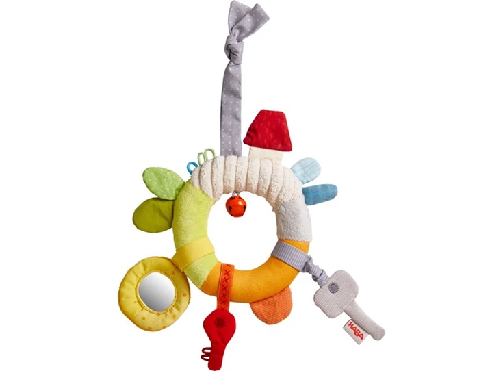 Deze hangfiguur is baby’s allereerste sleutel tot geluk! De veelkleurige sleutelhanger zorgt zowel thuis als onderweg voor veel afwisseling en een goed humeur. Geen wonder, want er valt ook erg veel te ontdekken! Spiegelfolie, belletje enz. zijn inbegrepen.