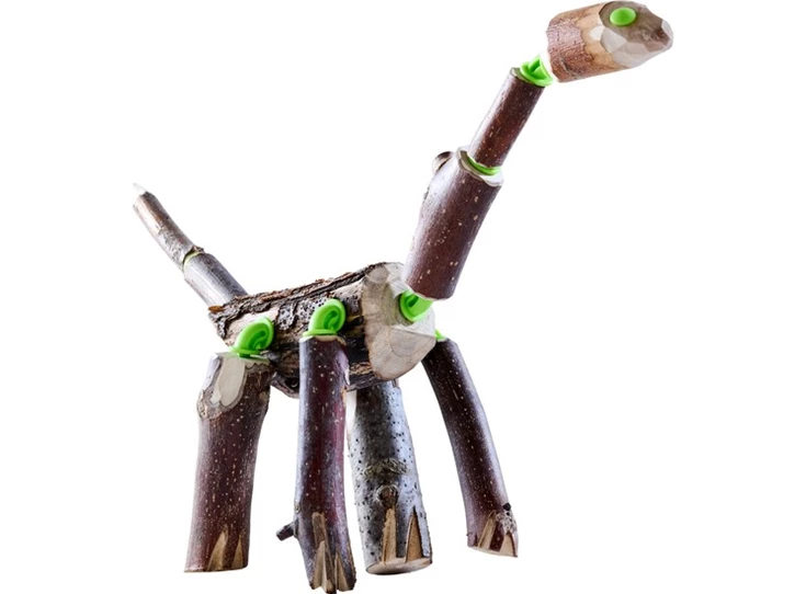 Verzamelen, zagen, boren, steken – met de Terra Kids Connectors kun je allerlei spannende dinosaurussen bouwen. Het principe is simpel en geniaal: verzamel hout in de natuur, bewerk dit thuis en boor er gaten in, steek de connectors erin en verbind ze met een ander houten deel – in een mum van tijd komen de dinosaurussen tot leven. In de handleiding staan allerlei suggesties voor verdere constructies. Houten takken zijn niet in de levering inbegrepen.