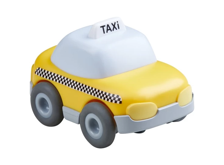 Taxi! Bijna direct stopt er een gele auto aan de rand van de straat en de passagiers kunnen instappen. Doelgericht rijdt hij over alle Kullerbü-speelbanen en wordt elke rit een waar avontuur!