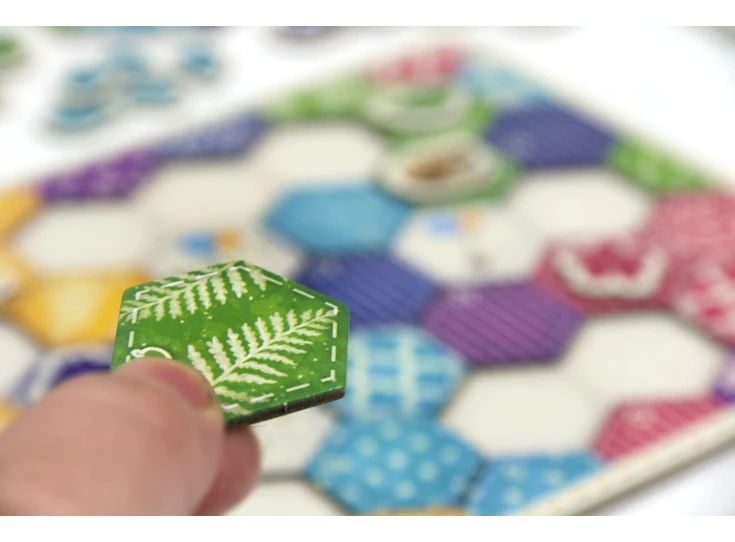 De beurten zijn simpel – naai lapjes aan je quilt door tegels te trekken en op je eigen speelbord te plaatsen. Ontvang overwinningspunten door de opdrachten op je spelersbord per kleur en/of per patroon te voltooien en maak je quilt nog mooier door knopen te verzamelen. Je kunt ook katten aantrekken door de juiste patronen op je quilt te naaien.