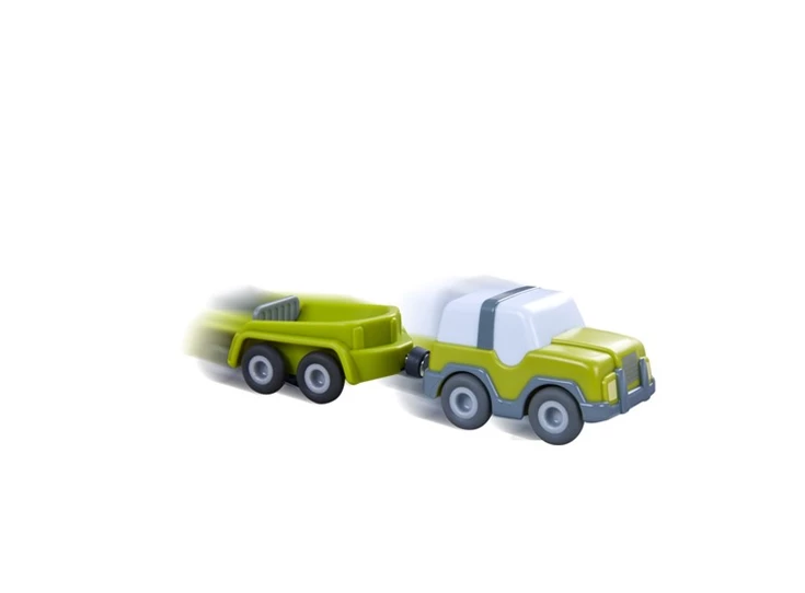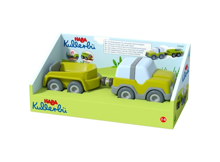 Bouwblokken, rails, houten kegels - niets is te zwaar voor de terreinwagen om op zijn aanhanger door Kullerbü te vervoeren. Dankzij de in- en uitklapbare laadklep gaat er onderweg niets verloren. Dus: aan de slag!