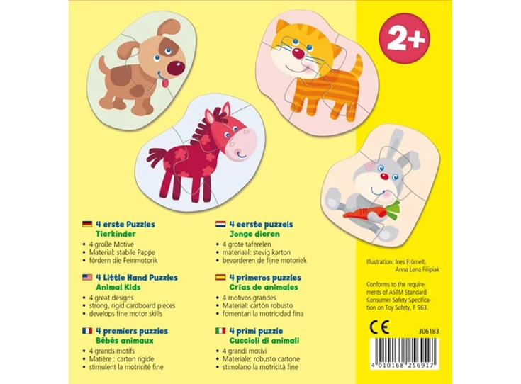 4 grote taferelen met 1 x 2, 2 x 3 en 1 x 4 puzzelstukken