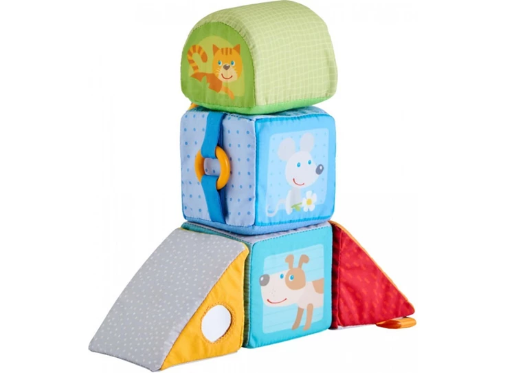 Hier is heel wat om te beluisteren, te bekijken, te voelen en vast te grijpen! Elk van de vijf blokken heeft een andere vorm en een speciaal effect. Een rammelaar, een spiegeltje, een pieper en knisperfolie stimuleren de zintuigen van baby’s op uiteenlopende manieren. De bonte kleuren en verschillende vormen zorgen elke dag opnieuw voor veel speelplezier en enthousiasme.