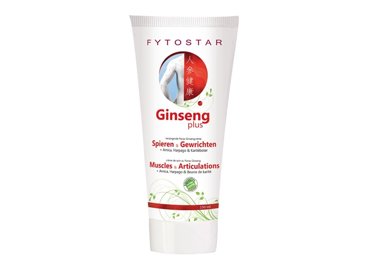 Ginseng plus crème van Fytostar is een rijke crème voor de verzorging van vermoeide en stijve spieren en helpt de soepele gewrichten te behouden door zijn hoogwaardige en natuurlijke bestanddelen: Panax Ginseng, Arnica en Harpago. Ook ideaal voor en na elke lichamelijke inspanning. Deze snelwerkende crème kleeft niet, wordt snel opgenomen en is door de toevoeging van Karitéboter extra voedend voor de huid. Ginseng plus crème bevat bovendien geen kleurstoffen, zodat er geen sporen op je kleding achterblijven.