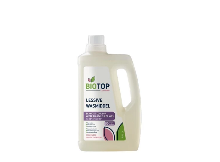Het vloeibare wasmidddel BIOTOP garandeert door haar plantaarside bestanddelen:
