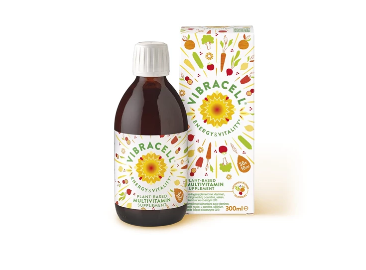 Vibracell®  is een natuurlijk multivitamine supplement op basis van koudgeperste sappen van met zorg geselecteerd fruit, groenten en planten. Bovendien zijn deze grotendeels van biologisch gecertificeerde oorsprong.  Verder worden vitaminen A, B6, B12, C, D, selenium, foliumzuur, koninginnenbrij, L-carnitine, coenzym Q10, … toegevoegd.  Onder elke fles zit een bio-fotonen plaatje dat de vibratie- of trillingsenergie van Vibracell versterkt.   Vibracell® is beschikbaar in een fles van 150 ml of 300 ml.