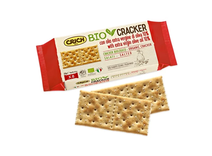 Heerlijke gezouten biocracker met op de bovenlaag extra vergine olijfolie.